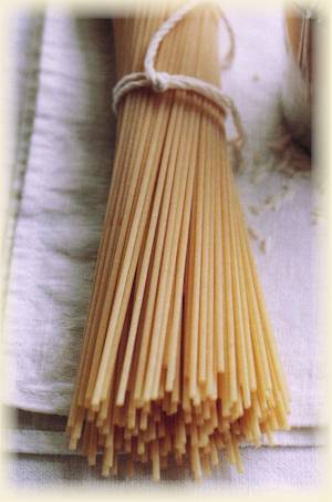 Pro 100 g Nudeln 1 Liter Wasser - lieber zu viel als zu wenig! - in einem ausreichend großen Topf zum Kochen bringen. Sobald das Wasser sprudelt, 2 TL Salz in den Topf geben und sofort die Nudeln hinein schütten. Direkt kräftig umrühren und die Hitze etwas runterschalten. Dann im offenen Topf kochen lassen. Ab und zu gut durchrühren, damit die Nudeln nicht aneinander oder am Topfboden kleben. Öl gehört nicht in das Kochwasser, denn dadurch könnten die Nudeln später die Sauce nicht mehr richtig annehmen. Die auf der Packung angegebene Garzeit sollte nur ein Anhaltswert sein. In regelmäßigen Abständen eine Nudel aus dem Topf fischen und probieren.Richtig sind die Nudeln, wenn sie al dente sind, also noch Biss haben. Dann sofort in ein Sieb abschütten. Auf gar keinen Fall mit kaltem Wasser abschrecken oder abkühlen lassen, sondern am besten sofort mit der Sauce vermischen, damit diese gut haftet! |